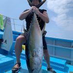 2019年9月27日(金) お客様より釣果報告頂きました。 昨日、竜海丸3号船・哲夫丸さんに乗船された中村様。 お見事!! キハダ36キロをキャッチされました!! おめでとうございます!! ヒットルアーはCB ONE・オ