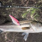 2021年10月22日(金) お客様より釣果報告頂きました。 陸っぱりでの釣果です!! 小橋様、ナイスサイズのシーバスをキャッチされました!! おめでとうございます!! ヒットルアーはマングローブスタジオ・ビッグバンディ