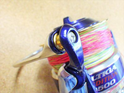 ベールアームが若干下に向いています。