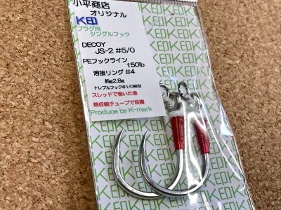 推奨フックは小平商店オリジナル 『K印』 プラグ用シングルフック JS-2 #5/0です。