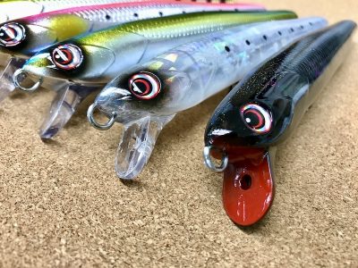 リップは潜らせる為ではなく、ダイビングペンシルにありがちな強めのジャーキング時に起こるオーバースライドをリップの水受けでブレーキを掛け、ダイビング時に発生する「泡」の中に留まらせ「喰わせの間」を演出します!!