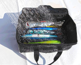 前面・背面・底面の三面がメッシュ素材なので使用後にルアーを入れたまま丸洗いできるPVC製のルアーメッシュバッグです!!