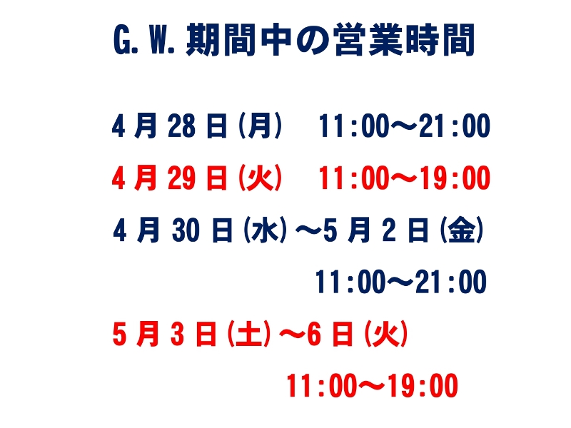 ゴールデンウィーク期間中は休まず営業します!!