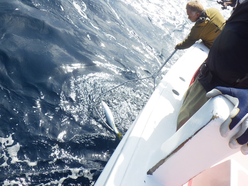 最後の最後に電車とレンタカーを駆使し、日帰りで愛知から来られていたお客様がキャスティングでイナダをキャッチ!!