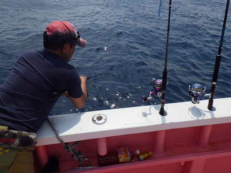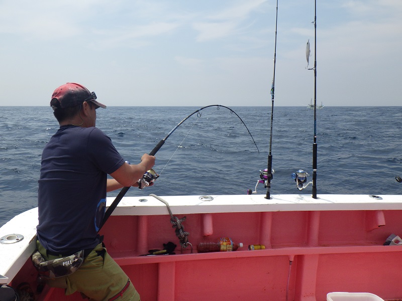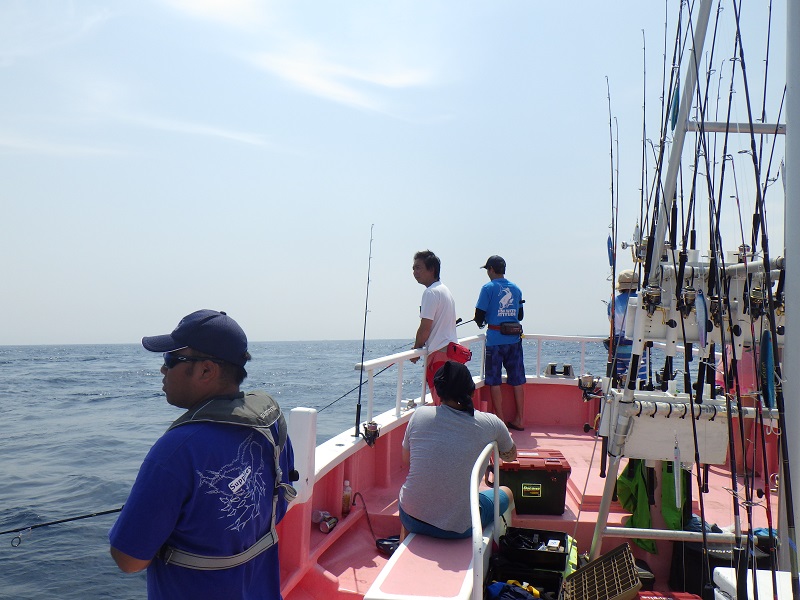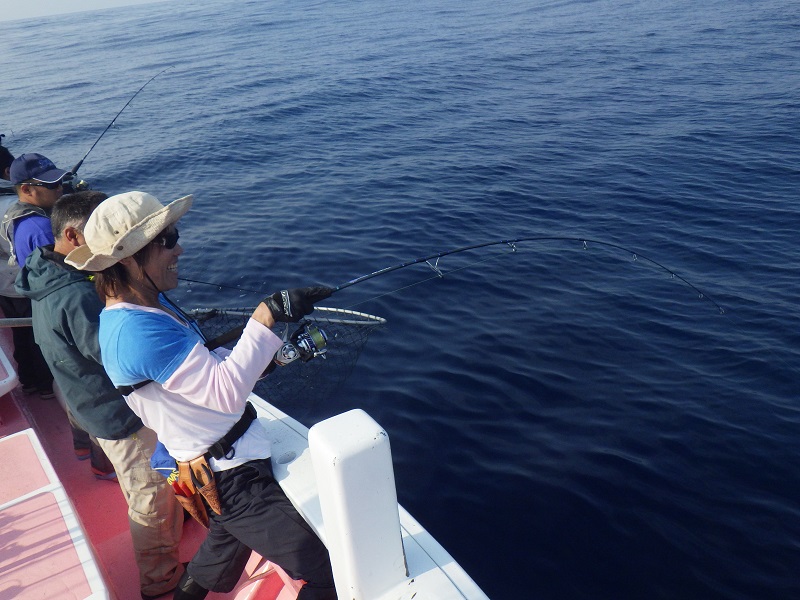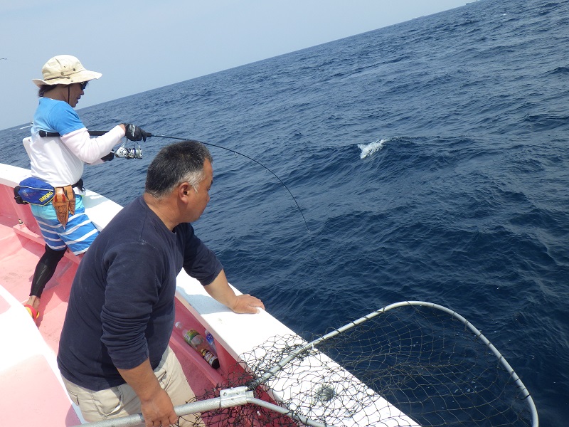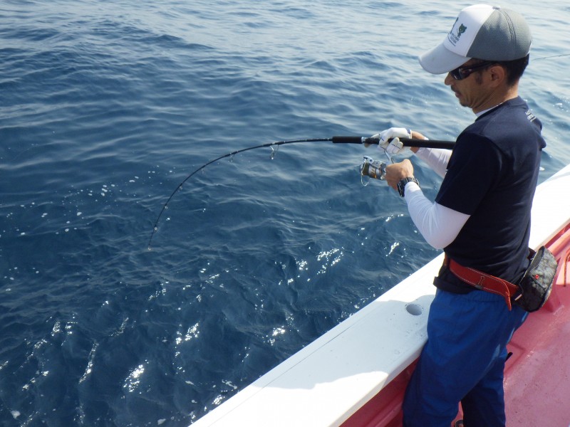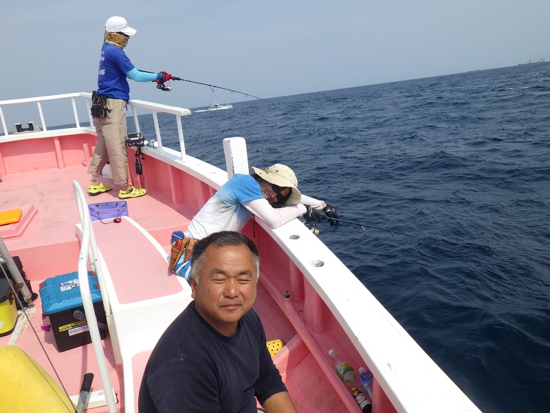 船長の「ここで釣れないとヒラマサ釣れないよ」のアナウンスで釣り開始!!