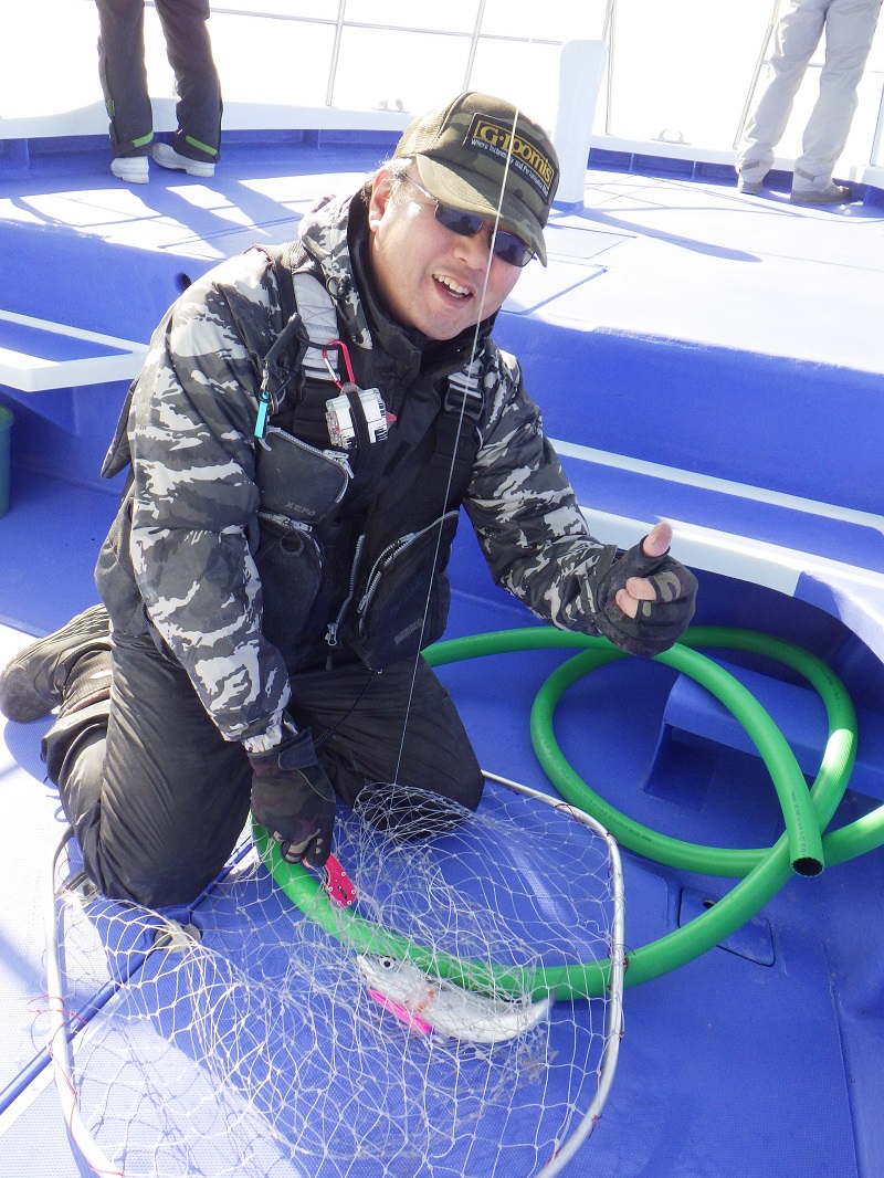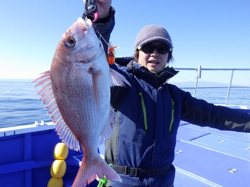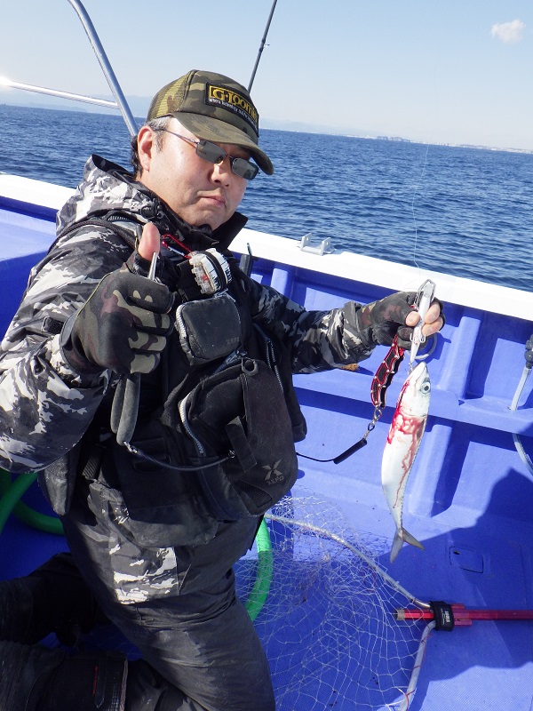 そんな鳥も見えなくなった潮止まりの時間帯、菊池船長の指示で鯛ラバをやってみると・・・