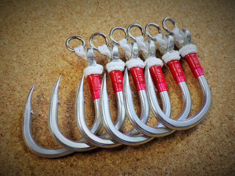 オーナー社カルティバSJ-41#13/0とSJ-51#11/0にCB ONEマックスパワーウェルデッドリング付きPEフックストリングスを使用。